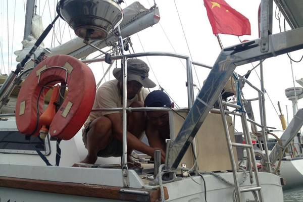 我们的下一站是兰卡威,也是我们参与的最后一段行程。在博得森参加完午宴后我们便全员投入到下一站航行的准备工作中。我们需要抓紧时间修理之前被海浪颠坏的太阳能板支架,以便在之后的航程里它能经受的起更大的考验。21号下午七点从博得森出发,下一站兰卡威,共280海里,预计航行时间两天两夜。虽然是最后一段,也必须做好装备,全力以赴。