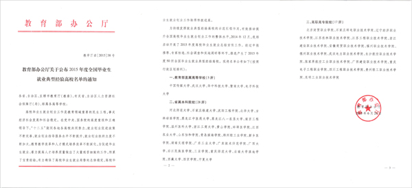 教育部公布2015年全国高校就业工作50强的通知文件