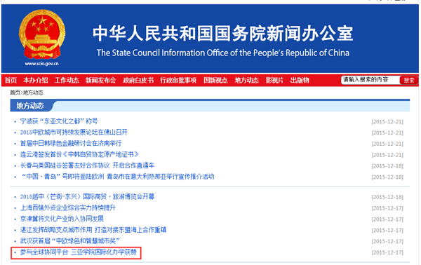12月17日,中华人民共和国国务院新闻办公室网站全文转载了题为《参与全球协同平台 三亚学院国际化办学获赞》一文,该文系统报道了我校应对教育国际化趋势,积极参与全球协同平台的思路和方法,反映出学校依托海南国际旅游岛建设的区位优势,不断创新和提升国际化办学水平的卓越表现。