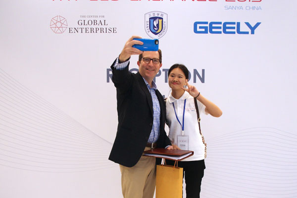 吉利-沃尔沃董事长李书福、三亚学院校长陆丹与部分来校ceo交流