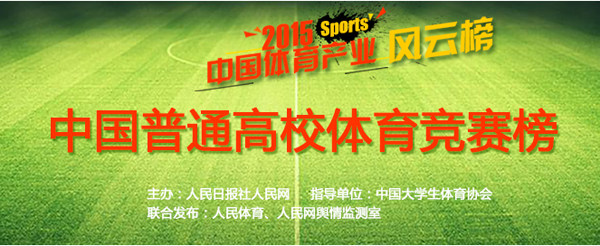 “2015中国普通高校体育竞赛榜”旨在展示中国大学生竞技体育水平,期望高校体育的竞技性与普及度同步提高,从而成为高校学生的生活新常态。本次榜单以体育成绩(55%)、校队设置(10%)、舆情热度(30%)和新媒体建设(5%)作为指标,统计了在2015年各项体育赛事中拿过成绩的全国438所普通高等学校,最终计分排行。