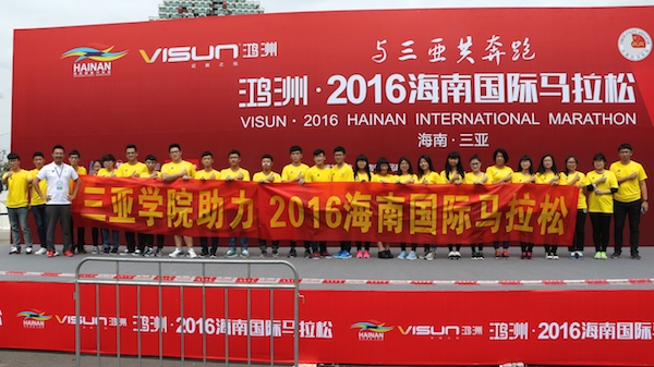 2月28日上午, 2016海南国际马拉松在三亚美丽之冠广场鸣枪开跑。来自中国、阿根廷、德国、日本、肯尼亚等32个国家及地区的17500名马拉松爱好者参赛。演艺明星许晴、孙楠、沈腾、苏运莹等作为公益形象大使现场助阵。我校千余名阳光学子作为志愿者助跑此次国际马拉松赛事,同万民跑友及现场数万市民游客一同迈步“阳光、健康、运动、快乐”。