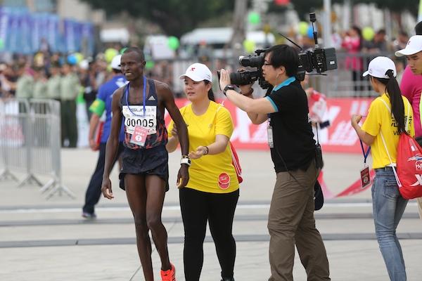 在激烈的马拉松竞技中,我校阳光学子不光是在赛场旁默默奉献,赛场上同样也有阳光学子矫健的身影。来自法学专业的李亚风报名参加了此次马拉松比赛,他也希望能有更多的人一起投入到快乐运动中去。