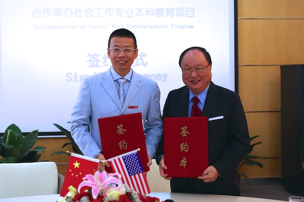 3月16日,美国托马斯大学中国校区校长黄天中一行莅临我校。党委书记、校长陆丹,校领导车怡在书海馆2号贵宾厅会见来访客人。双方签署合作协议,共建国际化办学协作新平台,将就相关专业本科教育项目等方面进行深入合作。外国语学院、管理学院和外事处负责人参加会谈。
