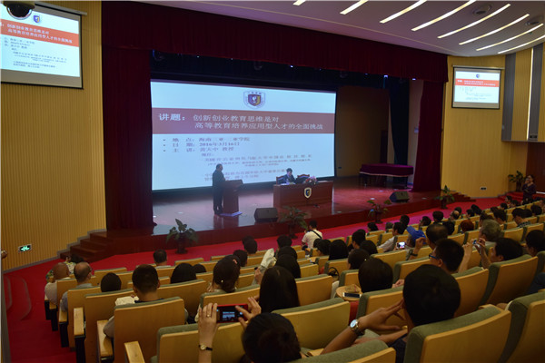 下午,黄天中应邀在书山馆报告厅作“创新创业教育思维是对高等教育培养应用型人才的全面挑战”主题报告。他结合案例,详细阐述了如何在课堂教学、社会实践、自主学习、文化引领、引导帮扶等五方面开展好创新教育。他表示,应用型人才培养要以创新创业教育为方向,坚持创新理念、创新思维和创新素质的培养。