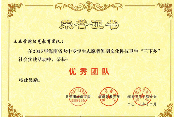 人文学院阳光教育团队荣获海南省大中专学生志愿者暑期文化科技卫生“三下乡”优秀团队