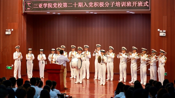 10月25日,伴随着音乐学院管乐队《歌唱祖国》的乐声,三亚学院党校第二十期入党积极分子培训班于书会堂正式开课,来自全校各党总支(直属党支部)的547名学员参加本期党校培训班。党委副书记、学务长沈建勇,组织部常务副部长、统战部副部长戴盛才出席开班式。