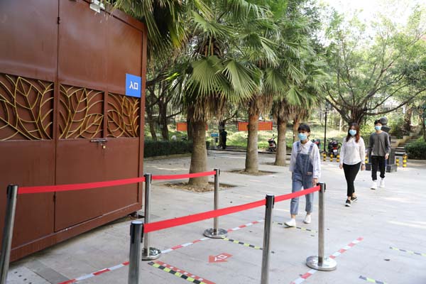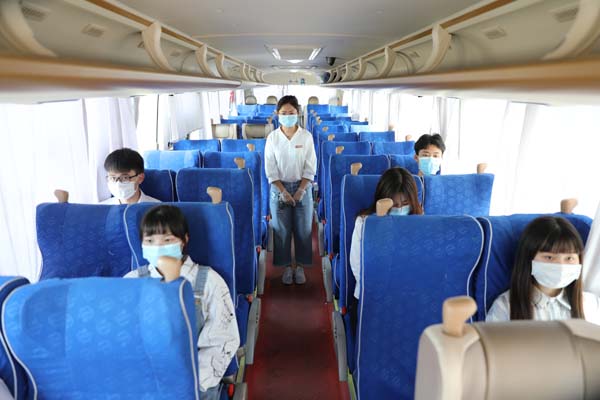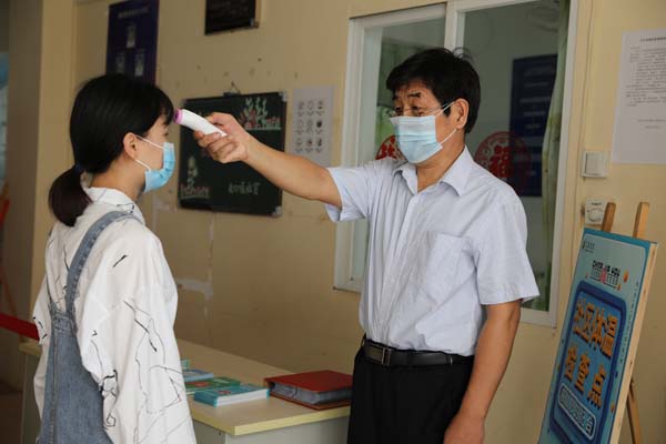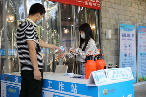 模拟接站 引导学生到达接站点,依次进行体温检测