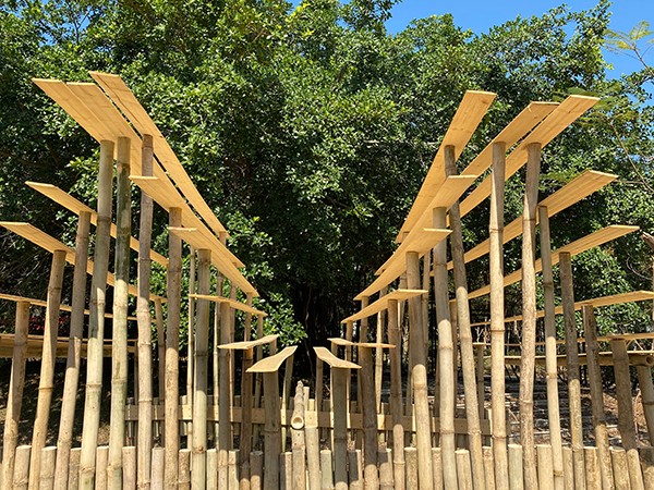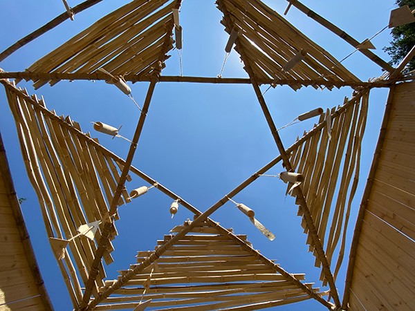 最近经过书德楼时,有没有被周围一些奇特的建构作品所吸引?这些建构作品都是三亚学院国际设计学院大一新生设计构建,用来参加2020三亚学院建构节大赛的创意作品。此次建构节以“远道而来的父母们设计短暂的休憩场所”为主题,同学们结合海南本土自然环境和气候特点,加以天马行空的想象与设计理念,在两天时间内完成思路构思与实物搭建,产出一栋栋独具匠心的艺术建筑,培养丰富了同学们的想象力与创新精神。