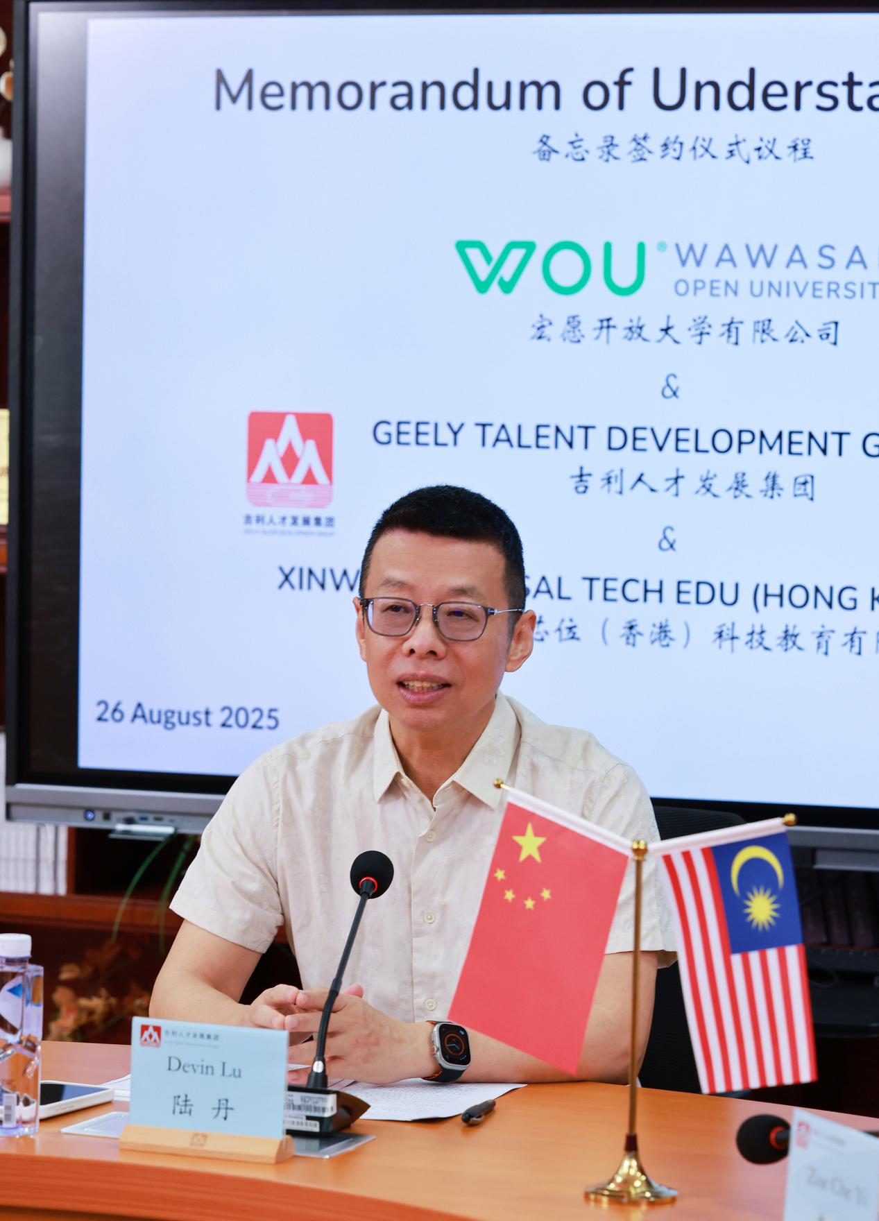 吉利人才发展集团CEO、芯位教育董事长陆丹博士指出,芯位教育以“开创教育无限可能”为使命,通过与马来西亚宏愿开放大学的战略合作,将吉利在智能制造、新能源汽车等领域的产业资源与宏愿开放大学的学术优势深度融合。此次合作聚焦构建“千人千面”的个性化教育,以真实企业项目和前沿技术实践为支撑,培养市场急需的高端复合型人才,实现教育链、人才链与产业链、创新链的有机衔接。依托资源无界共享、模式创新融合及AI技术赋能,共建“知识超市”式全球学习平台,探索人工智能时代教育生态重构,推动产教融合与技术温暖教育的深度融合。芯位教育将通过此次合作,在硕博课程开发、双学位项目及线上教育平台建设中发挥核心作用,为全球学习者构建更具包容性的无界化、智能化个性化教育未来。