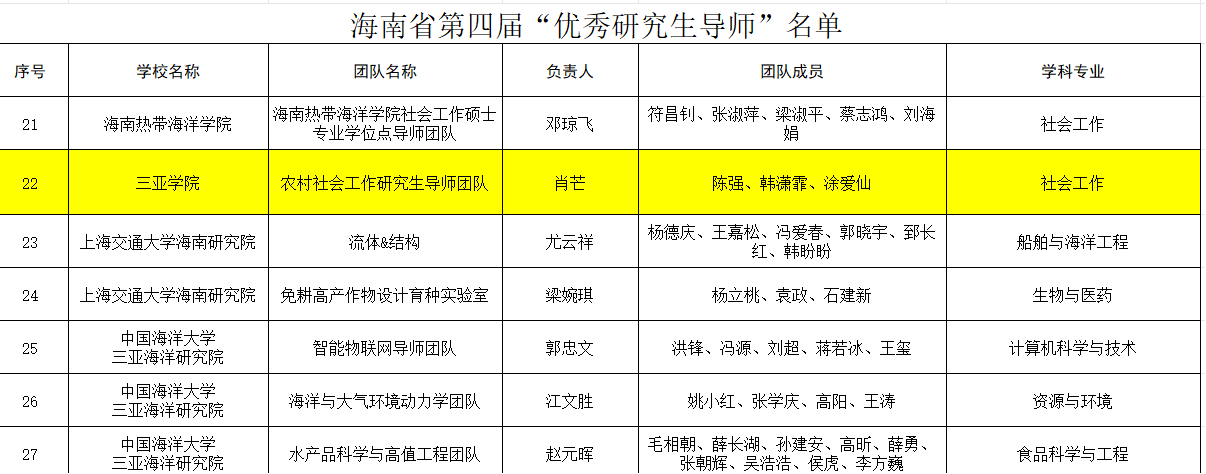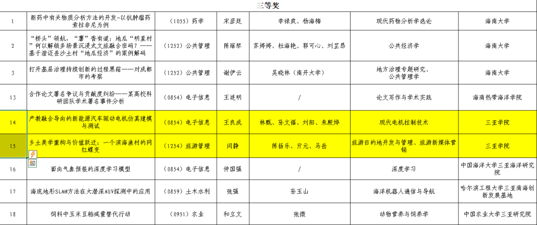 近日,海南省教育厅正式发布《海南省教育厅关于公布第四届“优秀研究生导师”和“优秀研究生导师团队”评选结果的通知》(琼教高〔2025〕95号)及《关于公布第四届专业学位研究生优秀教学案例评选结果的通知》(琼教高〔2025〕96号)。三亚学院社会工作专业苏米雅教授获颁“海南省优秀研究生导师”称号,肖芒教授带领的“农村社会工作研究生导师团队”入选优秀团队;旅游与酒店管理学院闫静副教授牵头的《乡土美学重构与价值跃迁:一个滨海渔村的网红蝶变》教学案例,以及新能源与智能网联汽车学院王良成高级工程师牵头的《产教融合导向的新能源汽车驱动电机仿真建模与测试》教学案例,均荣获三等奖。