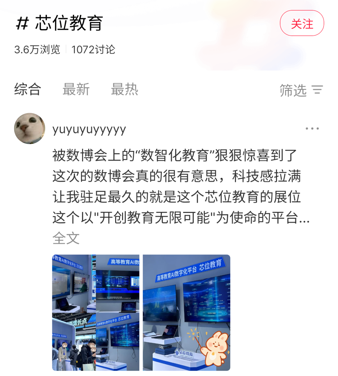 除媒体报道外,芯位教育展台还成为了打卡点,引起现场观展的高校学子热议。学生们在抖音、小红书等平台主动创作并分享了与芯位教育相关的图文、视频。