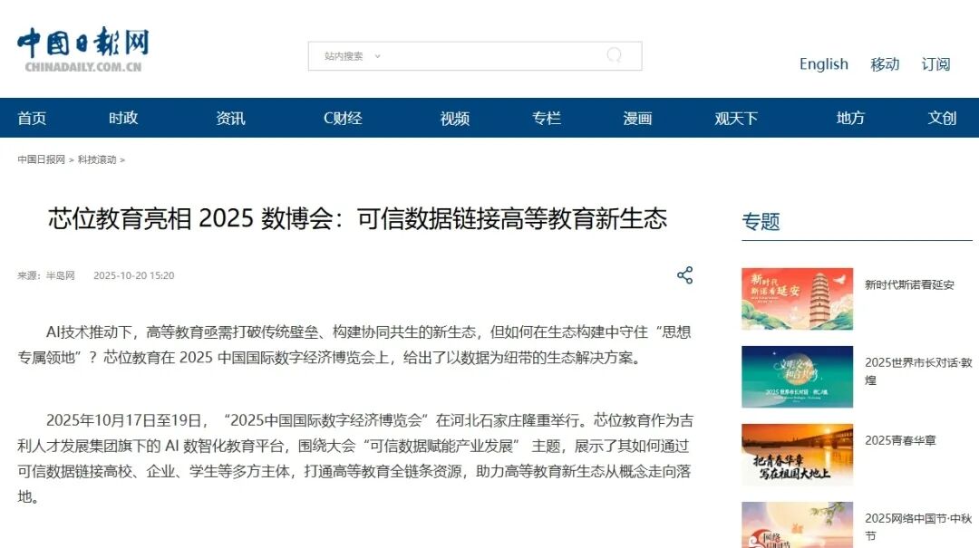 近日,芯位教育在2025中国国际数字经济博览会上备受瞩目。芯位教育作为参展企业之一,在这一场数字经济盛会上展示了前沿技术与教育领域融合的创新成果,引行业及媒体的高度关注。