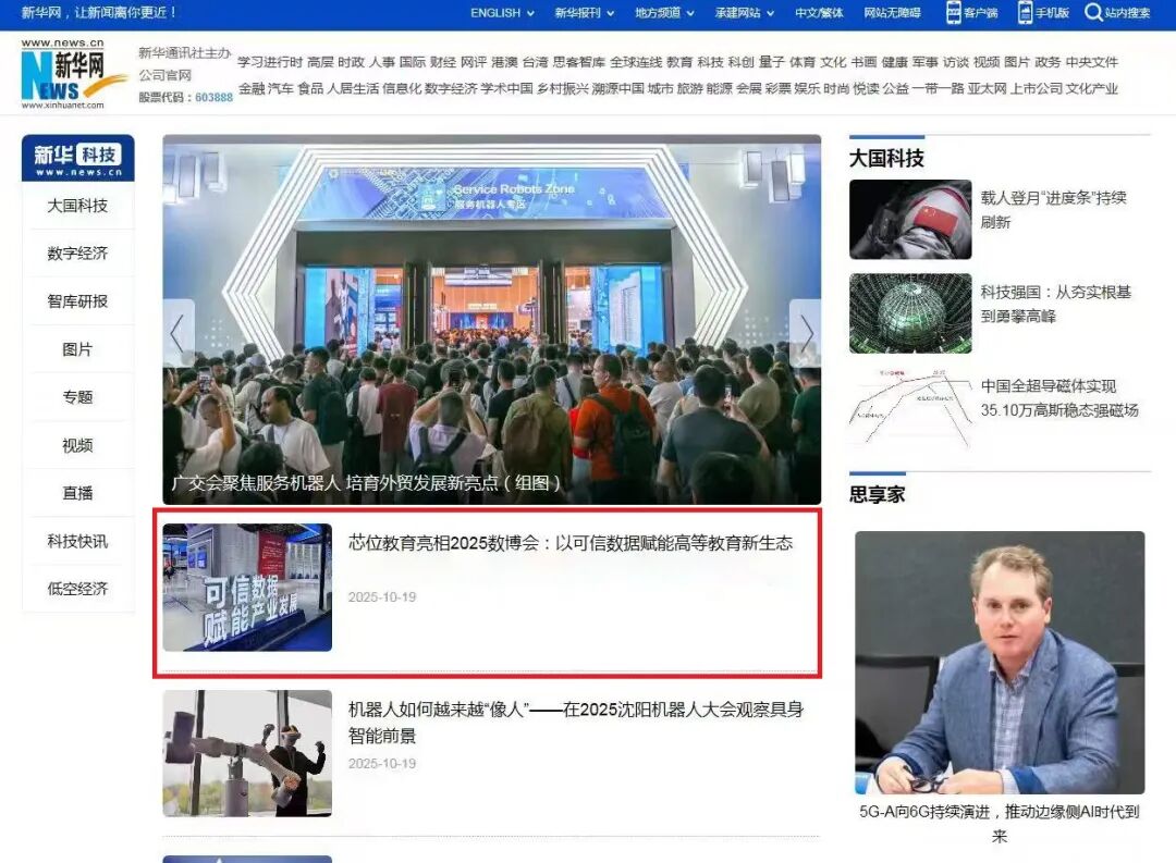 芯位教育在本届数博会上的参展动态受媒体广泛关注,累计获得超百篇相关报道。其中,涵盖了新华网、中国日报网等权威媒体,以及获得了新浪、网易、搜狐等门户网站的同步聚焦。
