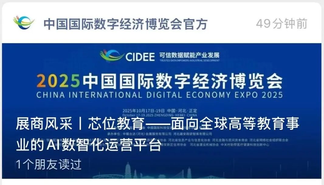 此外,中国国际数字经济博览会官方公众号、视频号及抖音号也对芯位教育的参展情况进行了同步报道与展示。