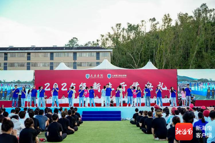 南海网、新海南客户端10月25日消息(记者 胡丽齐)10月24日,三亚学院田径场彩旗招展、青春涌动,三亚学院与三亚理工职业学院2025级新生开学典礼在此举行。两校领导、二级学院负责人、教职工代表及千余名2025级新生齐聚一堂,共同开启以“跨越边界 成就非凡自我”为主题的大学新征程。