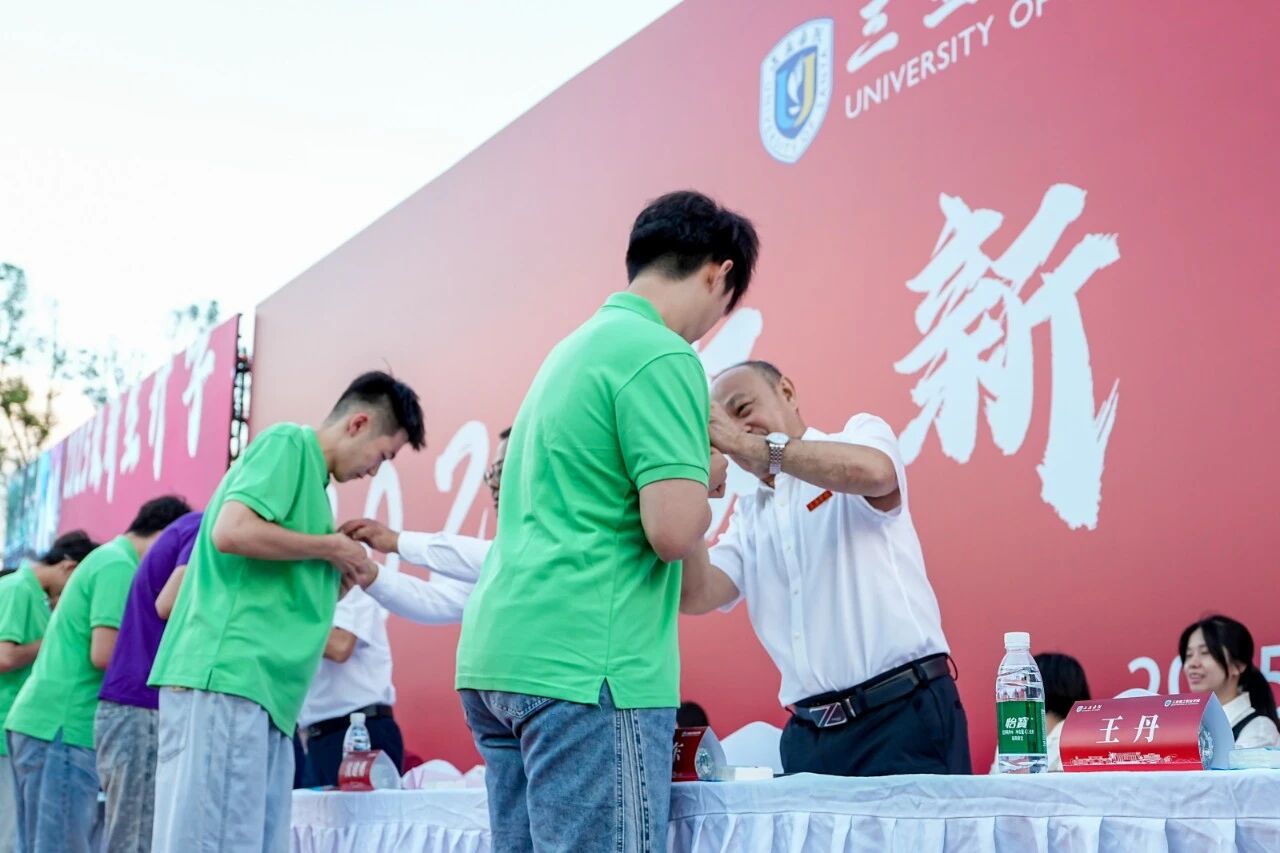 三亚学院校长沈建勇在讲话中则围绕“学什么”“怎么学”“学以致用”三大核心问题展开。他表示,面对知识指数级增长的时代,学校正以AI技术为驱动,打破传统“千人一面”教育模式,构建“一生一策”的个性化培养体系——通过“芯位教育”平台提供千余门课程,搭配本科导师制与跨学科实践平台,让每位新生都能拥有专属“大学课表”。“未来社会的挑战需要跨学科解答,希望同学们既聚焦专业,又拓展外延,在解决真实问题中实现成长。”校长的话语,为新生勾勒出清晰的“成长航海图”。