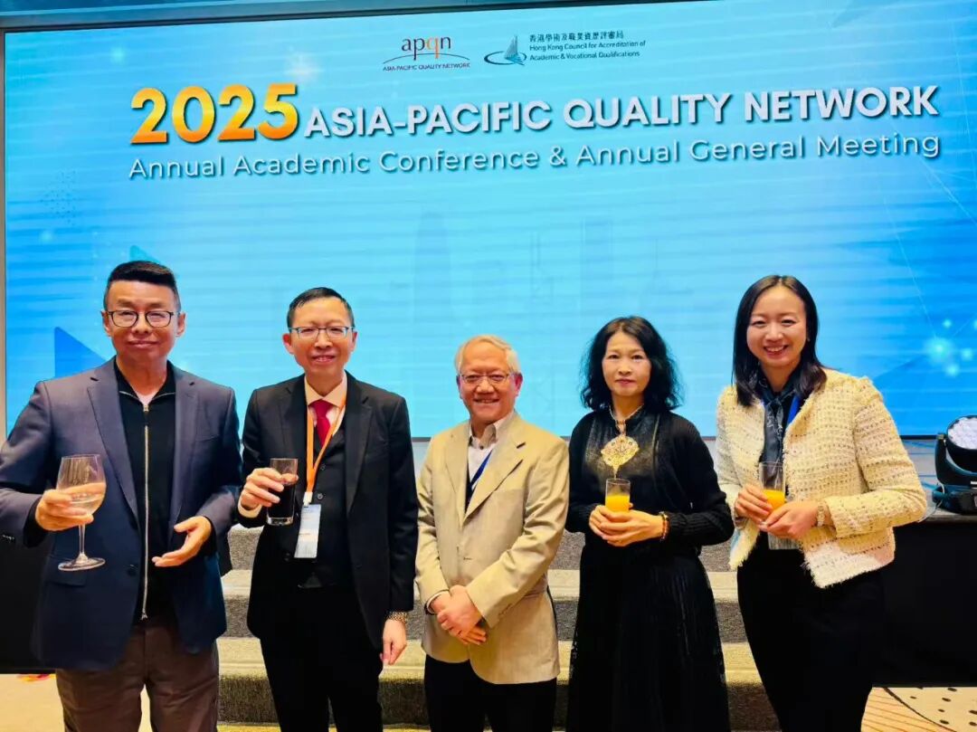 陆丹博士(左一)、车怡博士(左四)与香港学术及职业资历评审局领导合影