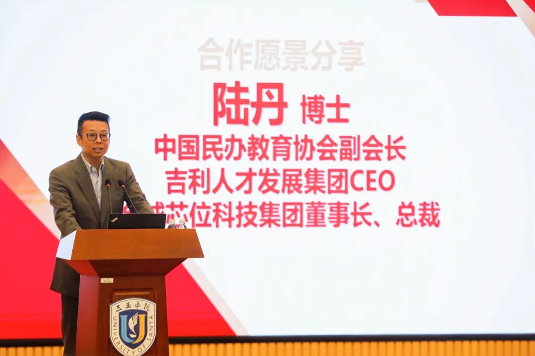 他回顾双方过往合作成果,提及吉利教育与韩国世翰大学达成 “芯位教育平台” 共识、金会长率团来访达成多项对话成果等基础。针对当下科技进步、产业重构的时代变革,他介绍三亚学院在吉利教育支持下推进办学结构性改革,以产教融合、项目制教学及AI全面赋能为核心路径,打破学科壁垒培育复合型应用人才,这与不久前成功闭幕的2025海南高等教育创新发展国际论坛共识高度契合。