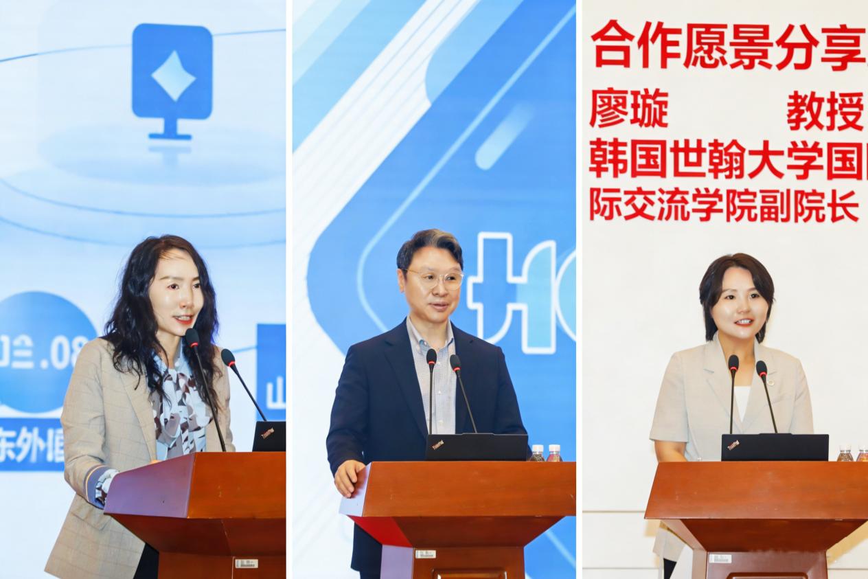 交流会上,大家围绕国际教育平台的合作以及21世纪中韩高等教育交流进行了深入探讨。信韩大学校长康圣钟教授和世翰大学国际交流学院副院长廖璇教授分享了学校的发展概况及与中国高校合作办学的成功经验,山东外国语职业技术大学党委副书记、副校长孔庆荣分享了学校国际化办学实践,介绍学校开展海外基地建设、专业标准输出等工作成效,中韩国高校的分享,让“合作”不再是纸上谈兵。
