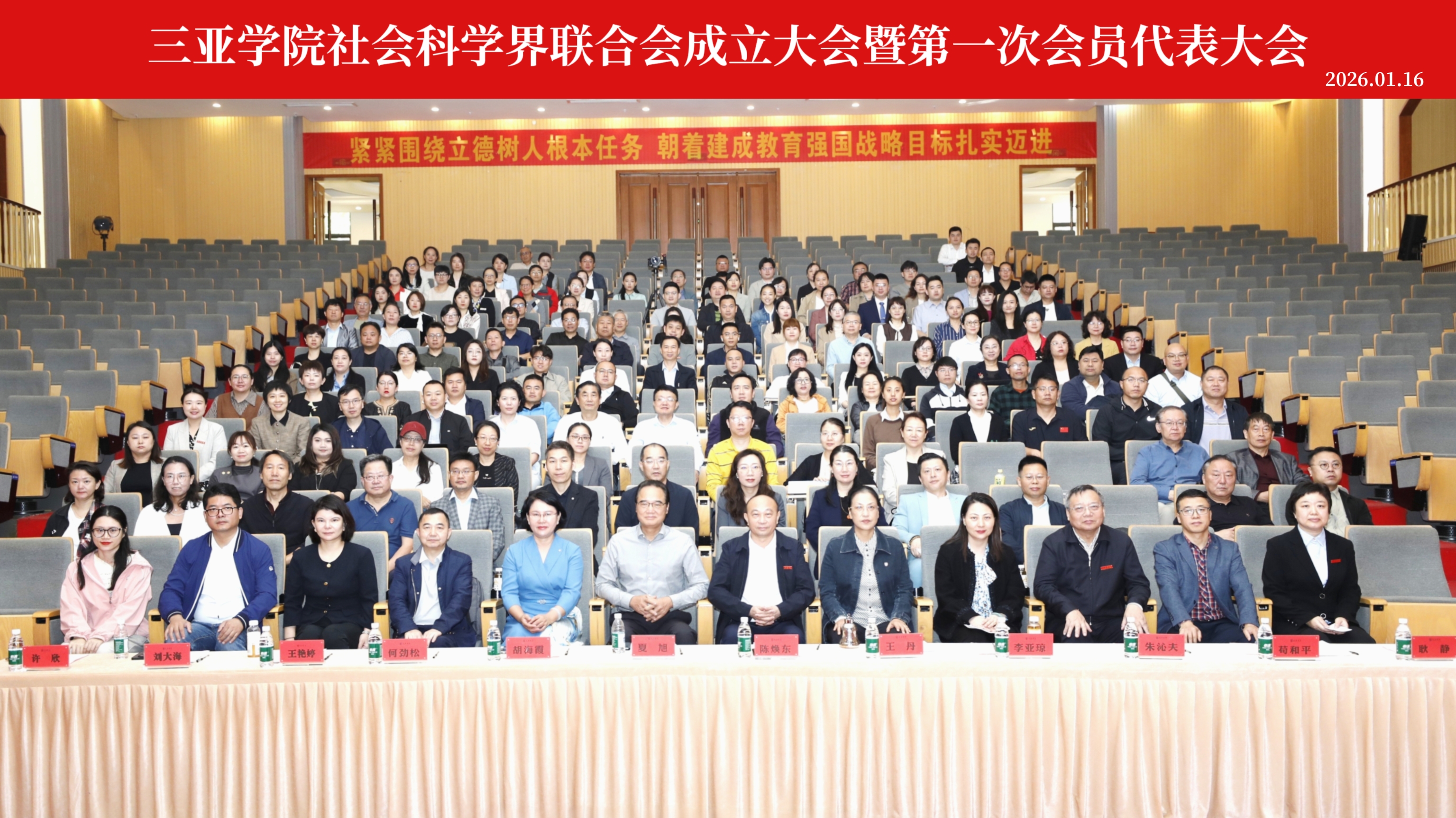 2026年1月16日上午,三亚学院社会科学界联合会成立暨第一次会员代表大会成功召开。海南省社会科学界联合会党组书记、主席,省社会科学院院长夏旭,三亚市社会科学界联合会党组书记、主席胡海霞,三亚学院党委书记陈焕东、执行校长王丹、副校长朱沁夫,及省社科联(社科院)相关部门负责人参加成立大会开幕式,三亚学院各学院各部门推选的会员代表参会并选举产生了三亚学院社会科学界联合会第一届委员会,执行校长王丹当选为第一届委员会主席。