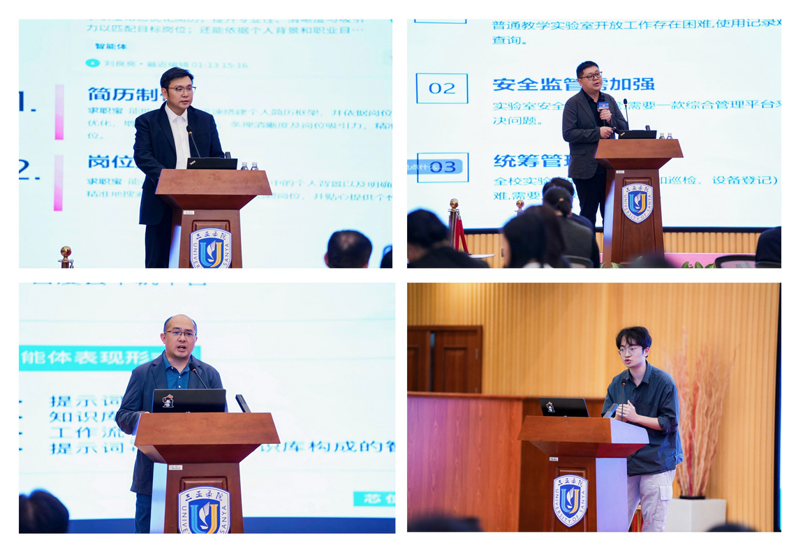 吉利学院、湘潭理工学院、南宁数字科技学院聚焦项目制教学改革,通过构建AI赋能的实战化商业场景,在多个专业与课程中培育学生的复合型能力与商业决策素养。同时,积极推动智能体技术在校园教学、管理及求职服务等场景中的创新应用,以技术赋能教育流程优化与数字化转型,构建智慧育人新生态。