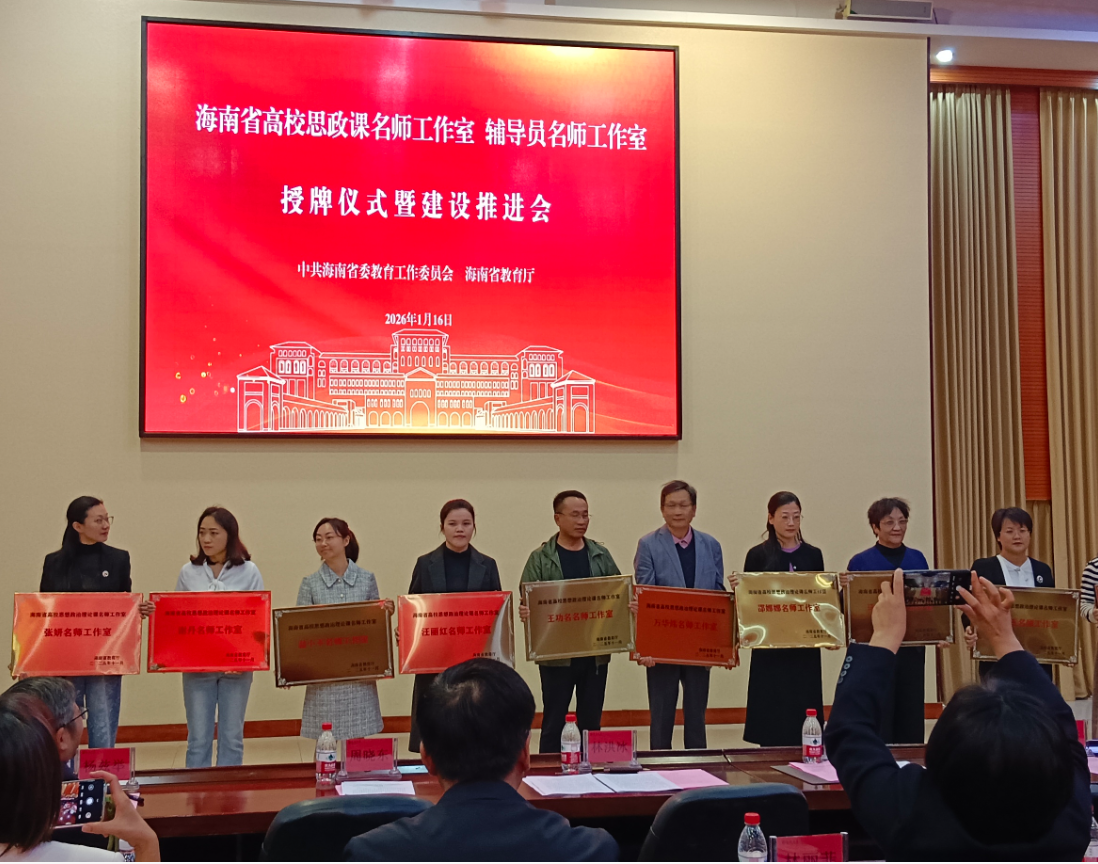 近期,海南省高校思政课名师工作室、辅导员名师工作室授牌仪式暨建设推进会在海口举行。三亚学院马克思主义学院院长王功名主持的“三亚学院思政访谈室”入选海南省高校思想政治理论课名师工作室;社会学院团委副书记蒋正喜主持的“AI-LOVE 心智引擎工作室”入选海南省高校辅导员名师工作室,两个名师工作室获省教育厅正式授牌。三亚学院副校长高一兰代表学校出席仪式。