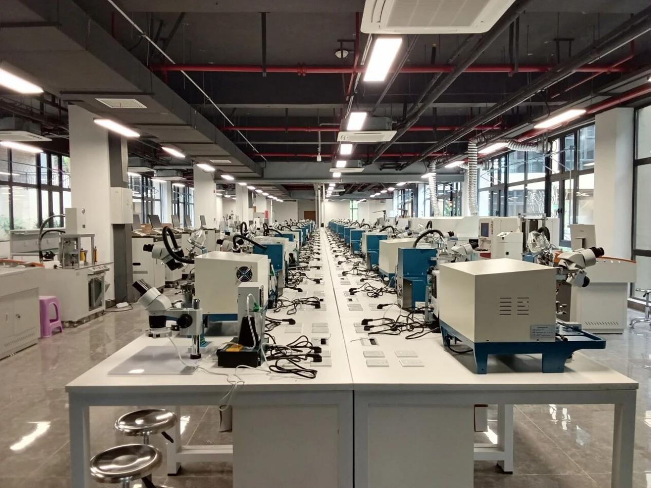 在“软件定义汽车”的时代,电池管理系统、自动驾驶控制器、智能座舱……这些“高大上”的部件,性能稳不稳,关键看制造和封装的工艺精度。为了让学生真正“懂行”,三亚学院直接“搬”了一条工业级生产线进校园:SMT实验室里,全自动锡膏印刷机、高速贴片机、回流焊炉、AOI检测设备一字排开,完整复刻车规级电子产品的生产流程;封装实验室里,晶圆划片、固晶、键合、塑封、测试,芯片诞生的每一步都能亲手操作。