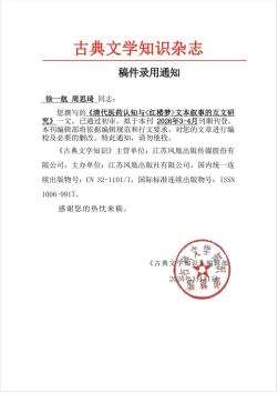 近日,从三亚学院文学院传来学术喜讯。天涯红学社现任社长、文学院学生徐一航,在古典文学领域知名期刊《古典文学知识》上发表题为《清代医药认知与〈红楼梦〉文本叙事的互文研究》的论文。该文从清代医药文化的历史语境出发,深入探讨《红楼梦》中疾病书写、药方描写与人物命运、情节结构之间的互文关系,展现了跨学科研究的独特视野。