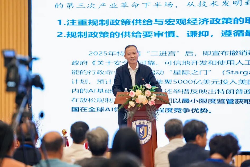 三亚学院副校长朱沁夫教授在开幕式上致辞。他表示,海南自贸港正加快打造数字贸易、数字金融、数字文旅等开放型数字经济产业体系,数字经济已成为自贸港建设的核心引擎。三亚学院始终立足海南、服务国家,深度整合财经、管理、金融等优势学科组建商学院,聚焦数字经济、金融科技等前沿领域,打造AI赋能、项目驱动的生态结构,全力服务海南自贸港高质量发展。期待依托此次高端学术交流平台,与全国专家携手并肩,共同推动数字经济产学研用深度融合,为海南自贸港发展注入新动能、增添新活力。