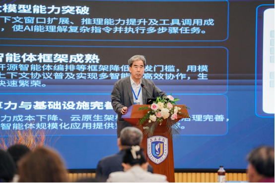 中国西部研究与发展促进会数字经济专业委员会主任孙启明教授结合AI发展热点,分享了数字经济时代的思考与展望。他表示,数字经济不仅是生产方式的深刻变革,更是一种全新的社会形态,高校与学界应主动拥抱技术变革,引导青年学子正确运用数字技术、坚守学术初心,为数字经济健康有序发展保驾护航。