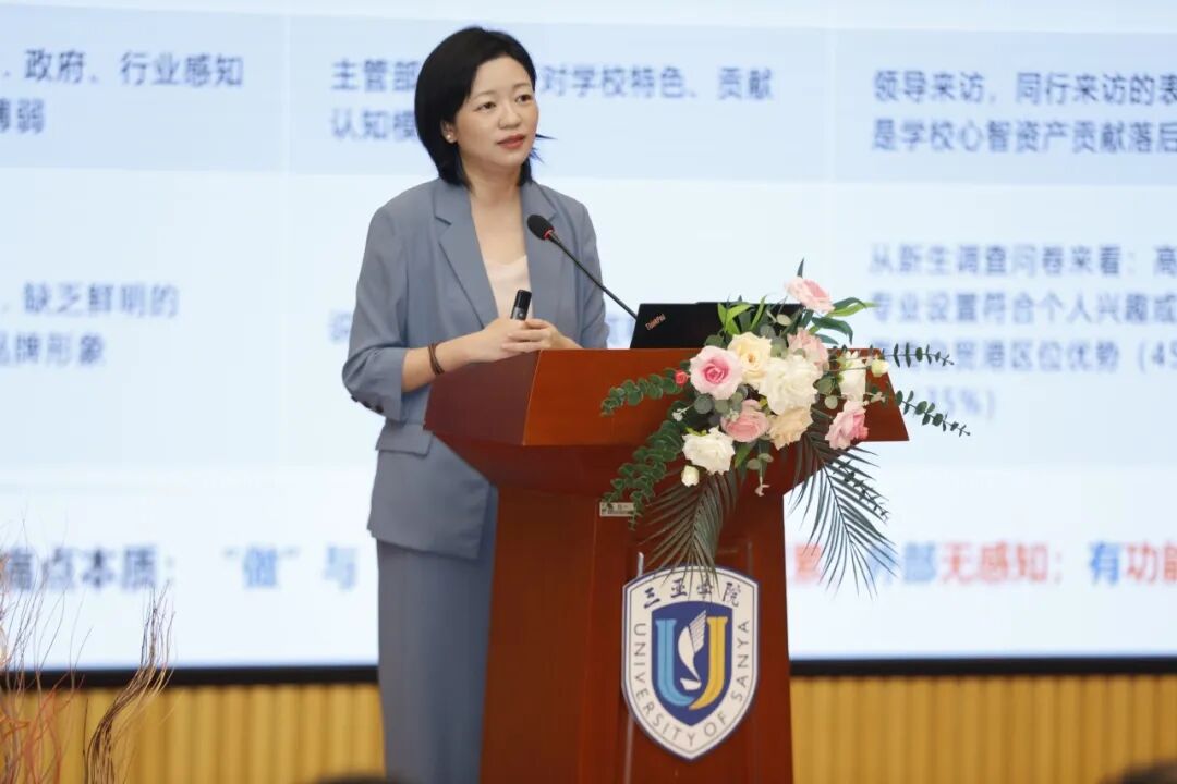 陈莎莎主任以品牌建设为主题,开展问题导向式复盘并部署下一步行动。她用客观数据分析学校在社会影响力提升、优质内容出圈、品牌辨识度增强、组织资产与新质资产相互转化等方面存在的问题,深入剖析品牌意识、内容转化、渠道建设、部门协同等方面的短板。紧扣全员传播要求,提出建立品牌KPI考核机制、完善常态化内容转化体系、激活师生传播力量、拓展全媒体传播矩阵、构建全域协同传播生态等务实举措,分享了品牌建设如何同频共振、同向发力,把扎实办学实力转化为鲜明品牌辨识度、广泛社会信任度与持久口碑影响力,让三亚学院品牌价值被考生、家长与社会各界看见、认可的思考。