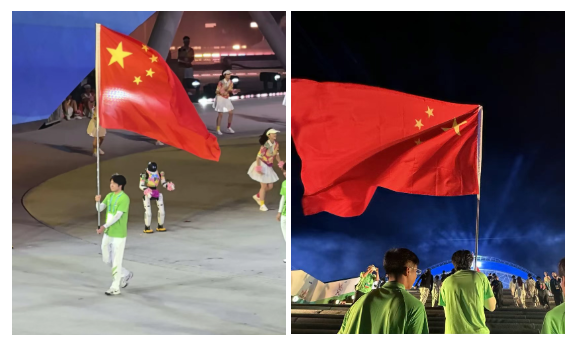 我很开心成为开幕式彩排中国队的扛旗手。高举五星红旗、听到全场欢呼的那一刻,我无比自豪。这场盛会让我感受到祖国的强盛,也给予我青春力量。我将铭记荣光,勇担使命,为学校争光、为祖国添彩。