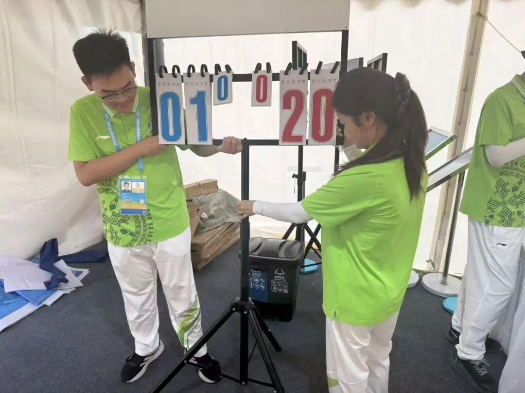 我的工作聚焦赛前预备:布置场馆、调试设备、制作白板赛程表。看似枯燥,却容不得半点马虎。