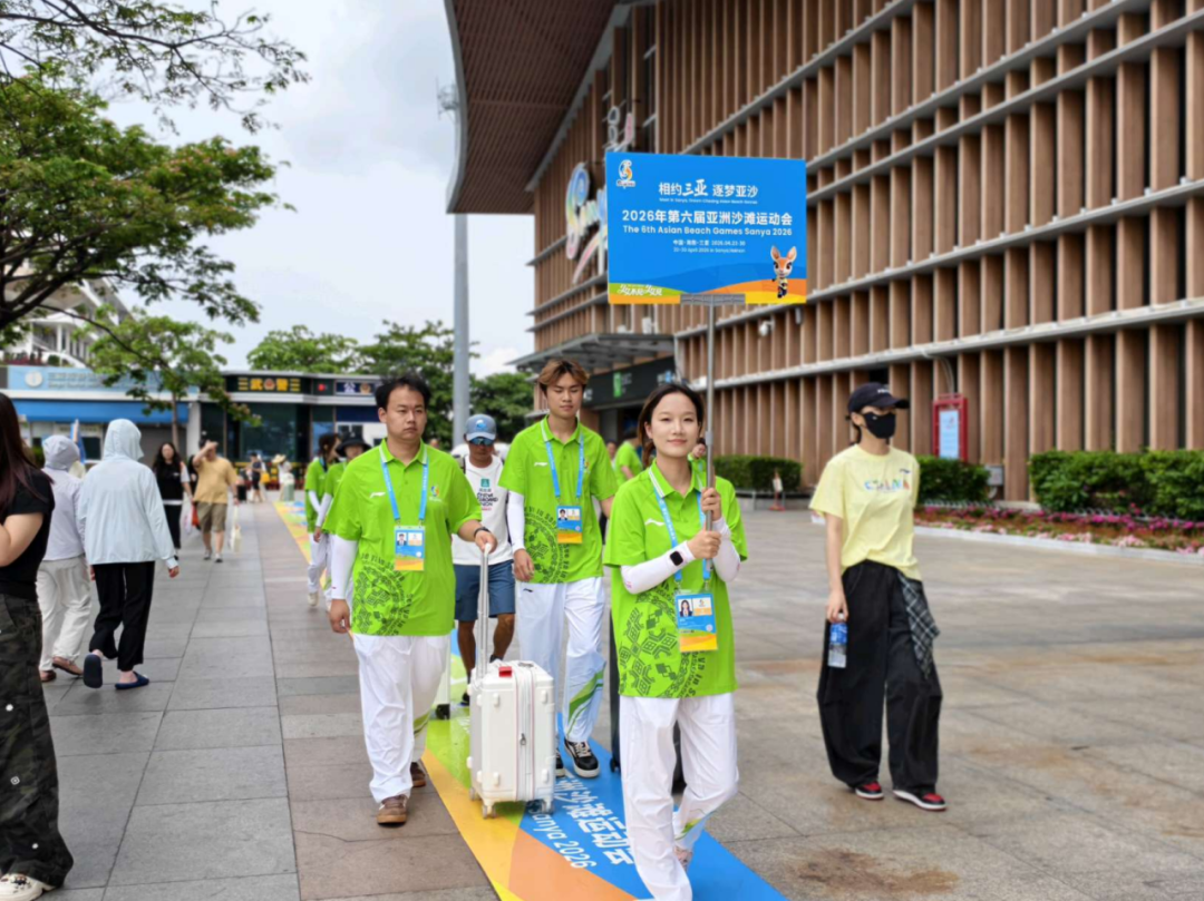 在这里,有一群身穿“亚沙绿”的三亚学院志愿者