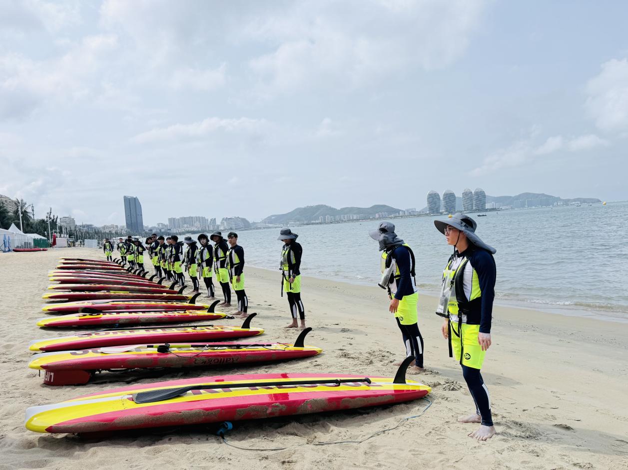 在亚沙会水上赛场,三亚学院42人救生保障团队承担着龙舟、游跑两项、水球、公开水域游泳四个项目的安全守护任务。他们以专业技能和高度警觉严阵以待,用责任与担当筑起“生命防线”,成为碧波赛场最可靠的“平安守护者”。