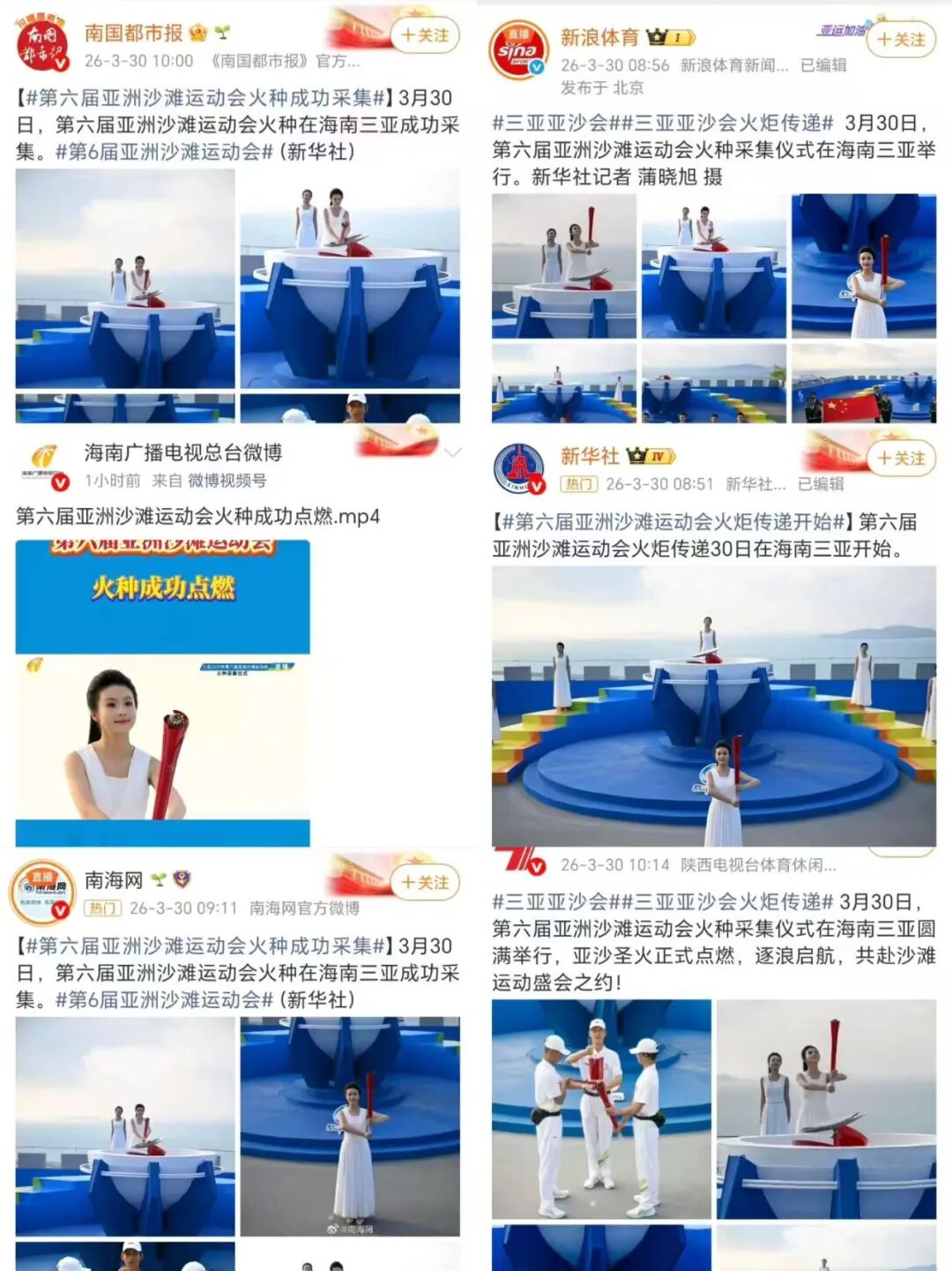 新华社、南海网、新浪体育等多家主流媒体也对吴佳琳进行了深入报道。新华社在火炬传递相关报道中,以图文并茂的形式记录了采火使者吴佳琳庄严采集圣火的荣耀时刻,向全国观众传递了三亚学院学子的沉稳与自信;新浪体育则从赛事人文角度出发,生动讲述了吴佳琳从校内选拔到站上国际舞台的成长历程,称其“用青春之火点亮亚沙之光”。