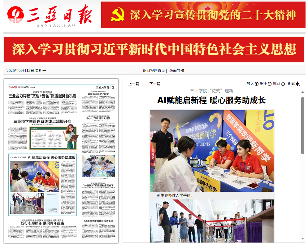 2025 级新生报到 《海南日报》报道三亚学院以“智”与“暖”开启新篇