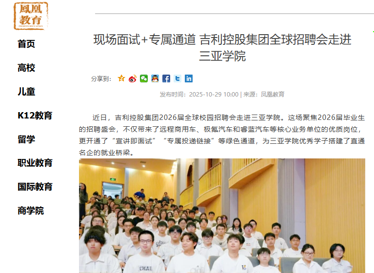 现场面试+专属通道 凤凰教育报道吉利控股集团全球招聘会走进三亚学院