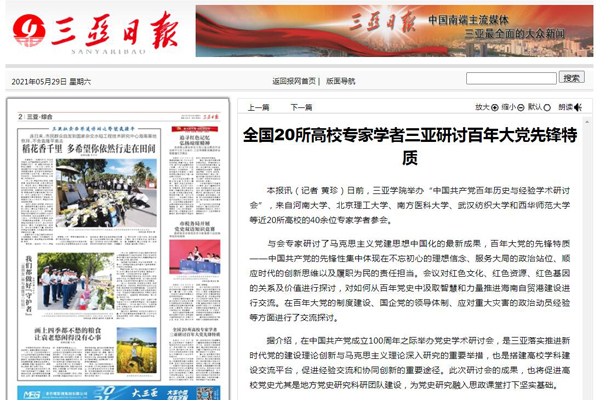 《三亚日报》报道三亚学院举办中国共产党百年历史与经验学术研讨会