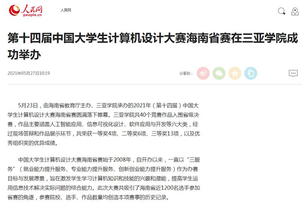 人民网报道第十四届中国大学生计算机设计大赛海南省赛在三亚学院成功举办