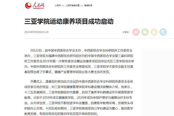 人民网报道三亚学院运动康养项目成功启动