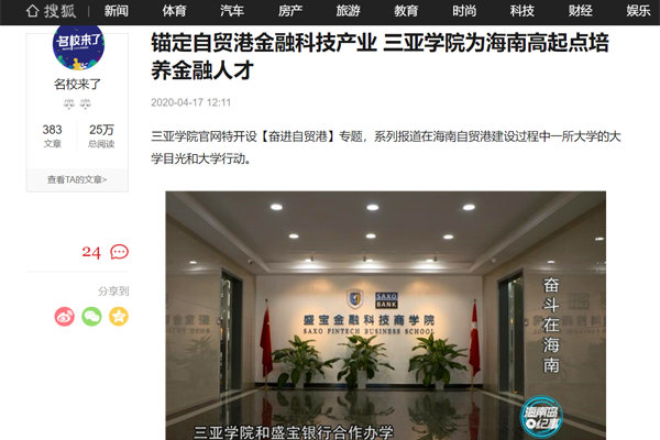 搜狐网报道三亚学院为海南高起点培养金融人才