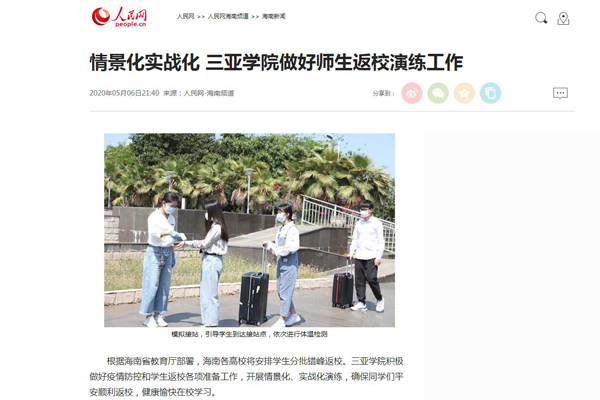 人民网报道三亚学院做好师生返校演练工作