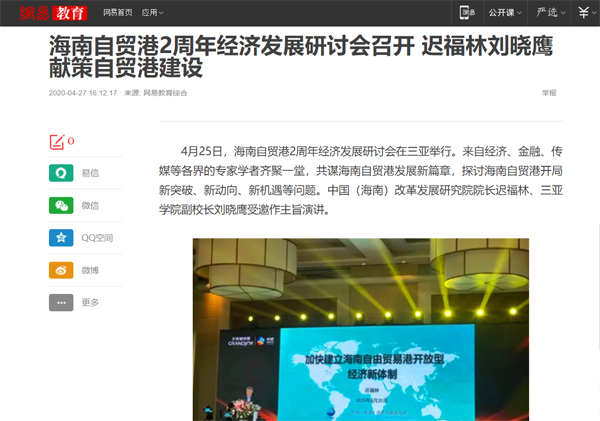 网易教育报道三亚学院副校长刘晓鹰献策自贸港建设
