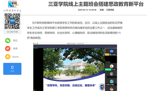 新华网报道三亚学院线上主题班会搭建思政教育新平台