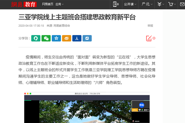 网易教育三亚学院线上主题班会搭建思政教育新平台