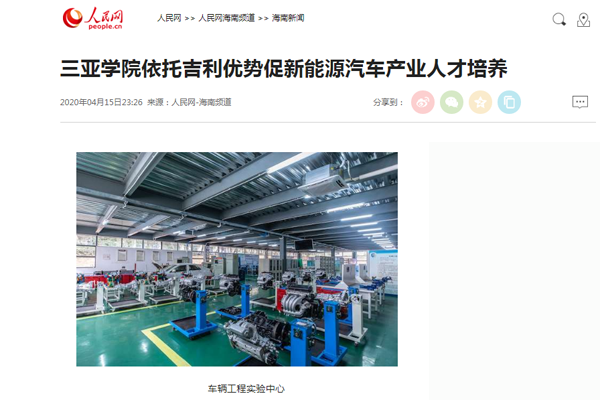 人民网报道三亚学院依托吉利优势促新能源汽车产业人才培养