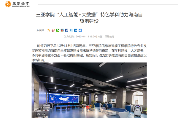 凤凰教育报道三亚学院“人工智能+大数据”特色学科助力海南自贸港建设