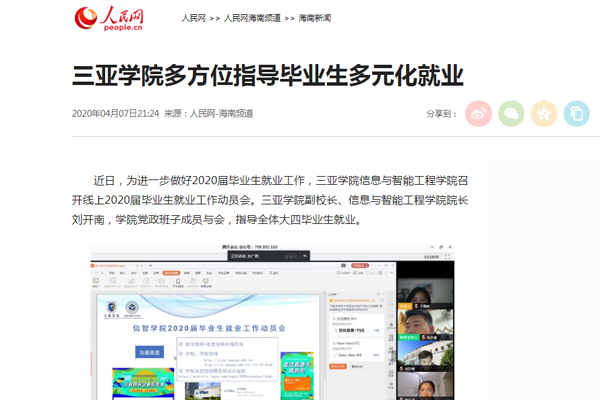 人民网报道三亚学院多方位指导毕业生多元化就业